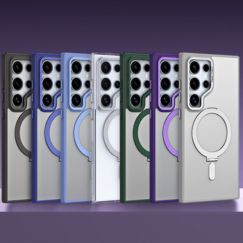 Магнитный чехол для телефона с поворотной подставкой на 360 ° для беспроводной зарядки для Samsung Galaxy S25 Ultra S24Plus противоударный защитный чехол